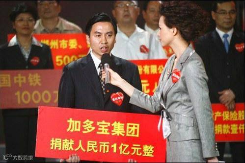 图说:2008年,汶川地震爱心晚会现场,加多宝捐助1亿元,“震惊四座”