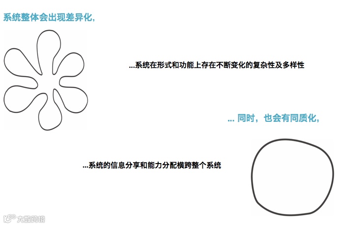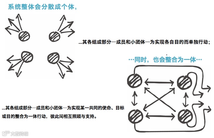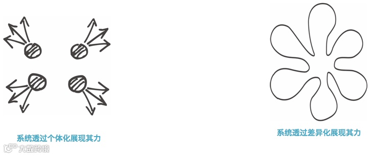 系统凭借个体化与差异化展现其力。这两个都是充满能量的过程。差异化关乎细密的差别、变化、成长、以及不断适应。个体化关乎自由、独立、个人与团体的释放。