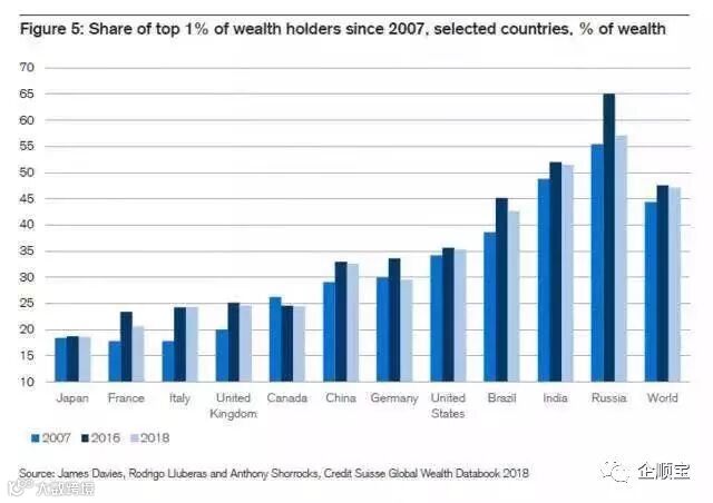 其中,中国家庭总财富已超过50万亿,紧跟美国之后,位居全球第二。但人均财富而言,瑞士人最富,个人平均财富达到53万美元。与此同时,全球贫富差距形势依然严峻,全世界一近半的财富握在1%的人手中。