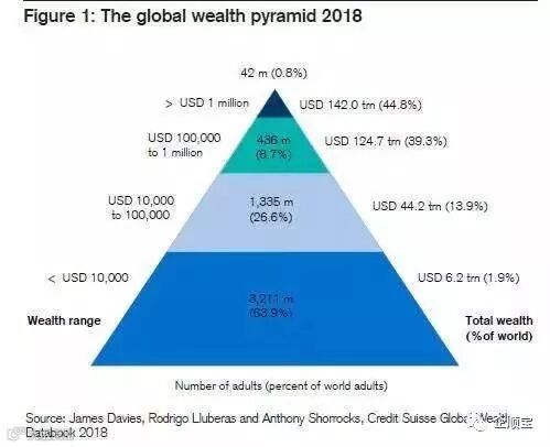 在这份报告中,截至2018年中期的12个月内,全球总财富增加了14万亿美元,达到317万亿美元,增长率约为4.6%。