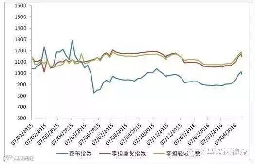 各车型指数环比均有不同程度回落,其中整车指数回落幅度高于零担指数,零担轻货指数回落幅度高于零担重货指数。上周,整车指数为992.2点,环比回落2.0%,比上年同期回落10.2%,但比年初回升7.2%;零担重货指数为1151.9点,环比回落1.5%,同比回升4.8%;零担轻货指数为1168.9点,环比回落1.5%,同比回落0.2%。