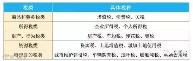 我国的税共有17种,费则可能达到上百种之多,例如房地产企业就至少涉及11种税及56种费。以下是目前中国开征的税种,共5类17种: