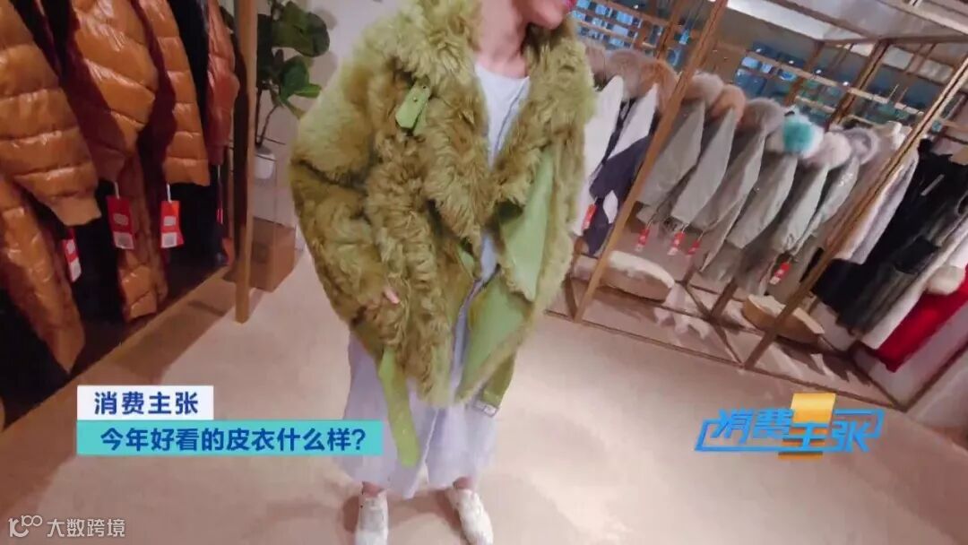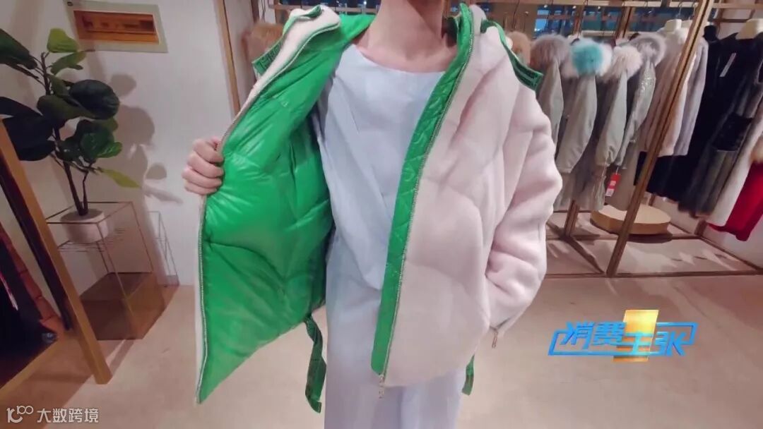 王飞分析,这款服装之所以卖得好,大体是因为采用了牛油果绿的流行颜色,版型又属于比较年轻化,穿着感觉舒适,就连在腋下位置都留有充足的空间,这在冬天,穿起来十分方便。同时这款皮毛一体服装在面料上也有自己的特点。