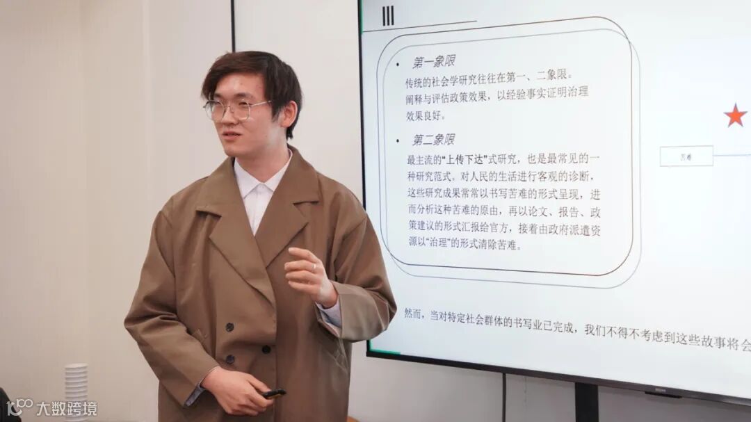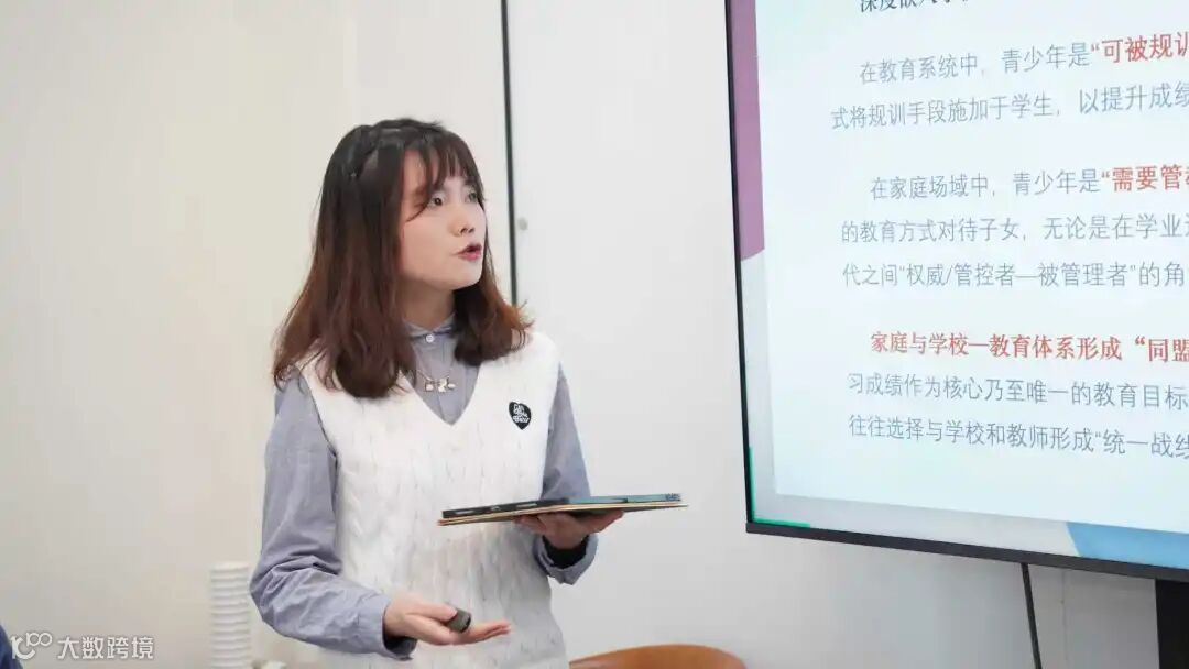 来自复旦大学社政学院社会学专业的胡一叶同学以《关于中国城市中产阶级青少年休学家庭的研究》来为本次新锐论坛收尾。她通过质性研究方法,关注青少年群体,尝试深入了解“关于青少年们休学与回归的故事是怎样展开的”。她的研究呈现出关系性与主体性的特点,既探讨学校、家庭、教育体制的合谋规训如何发生,厌学和休学经历如何在青少年与周围环境的互动中生成;同时,她也特别关注,青少年的矛盾主体状态如何影响他们自身建构个体自我,又如何在主体性的引导下反抗治理和呼吁支持。
