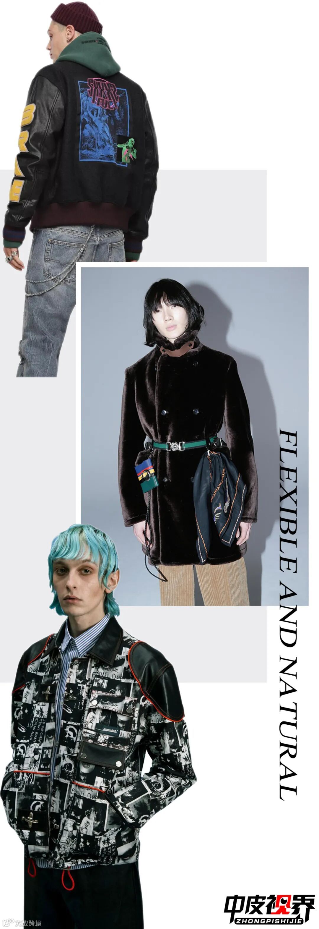柔软舒适的皮革、皮草材质与街装、休闲风的结合运用,使着装风格更显灵活自然。