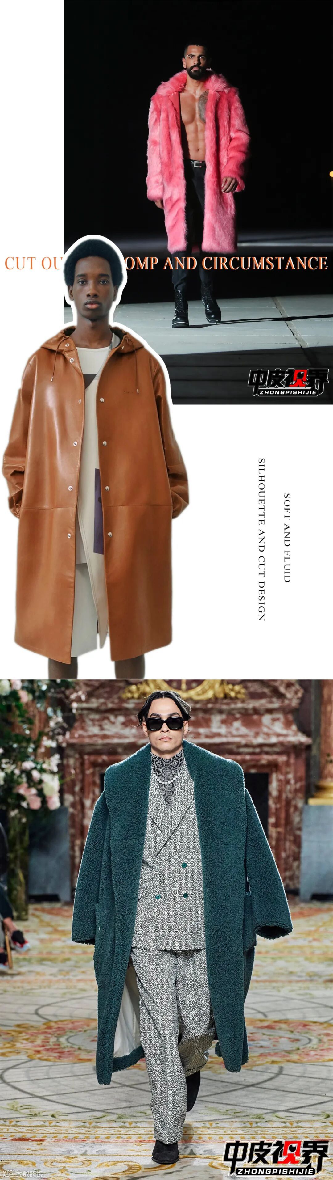 剔除浮夸矫饰,以柔和流畅的廓形和剪裁设计,为男装皮衣皮草带来更为永久的经典造型。
