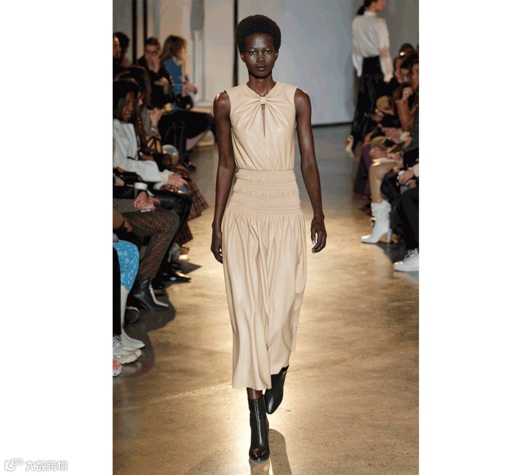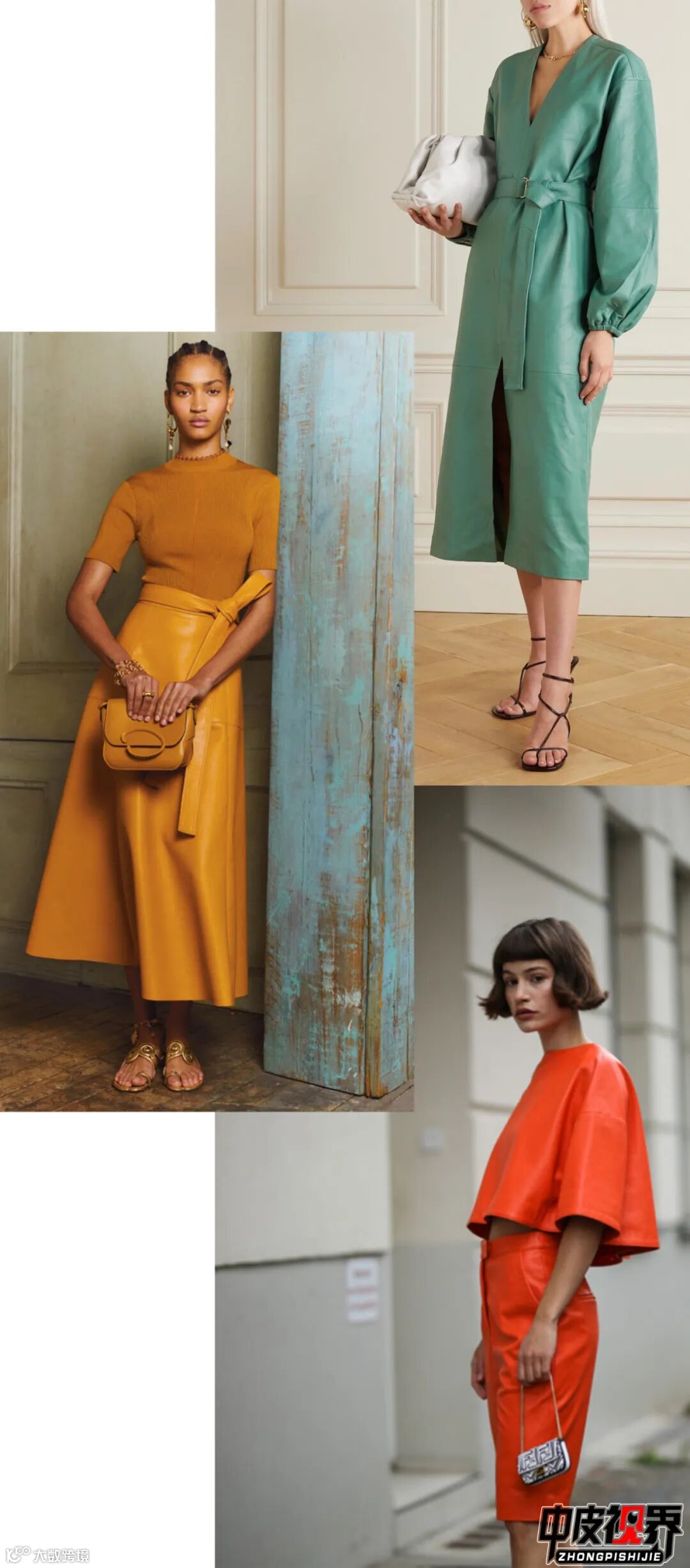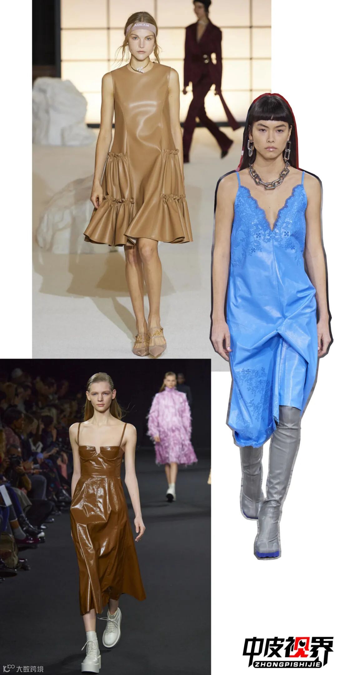 皮革常常被人们刻板印象的认为更适合在秋冬穿着,且常给人以沉闷无趣的印象,但随着皮革处理加工技术的不断进步,无论是皮革的种类还是色彩都越来越多,设计师们对皮革也越加青睐,种种原因使皮革在服装领域适用的范围更加广泛,早先几乎只在秋冬出现的皮革也开始慢慢向春夏蔓延,服装款式的不断更新也使受众愈加年轻化。