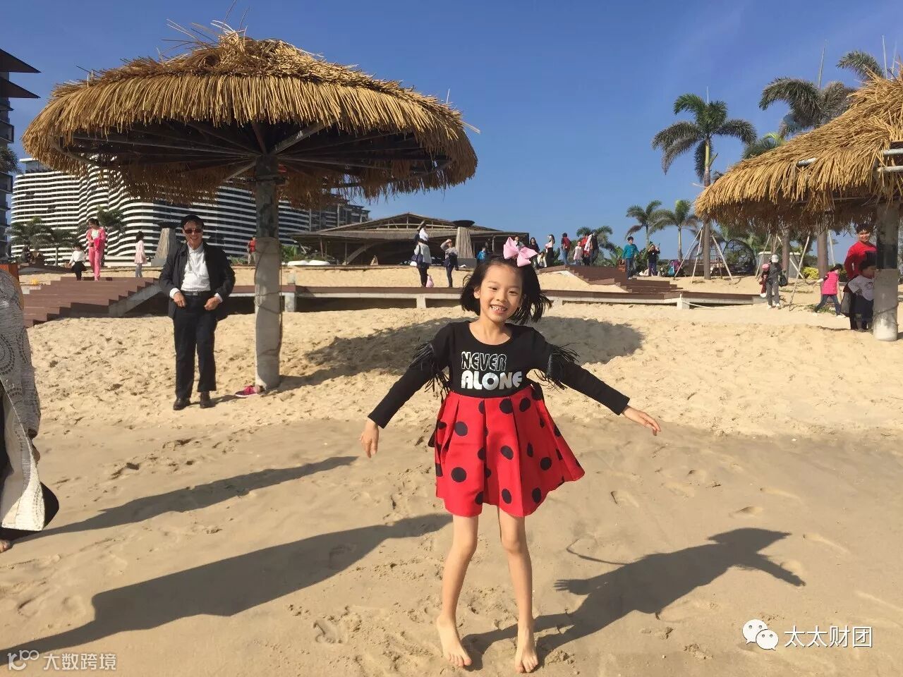 看看漂亮的小姑娘踩着沙滩