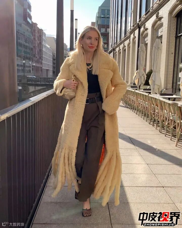 量感的皮草大衣包容力极强,流苏下摆的设计,走路带风,时尚摩登,搭配高腰的直筒裤显露腰线,不管是经典的H型还是A型统统都可以。