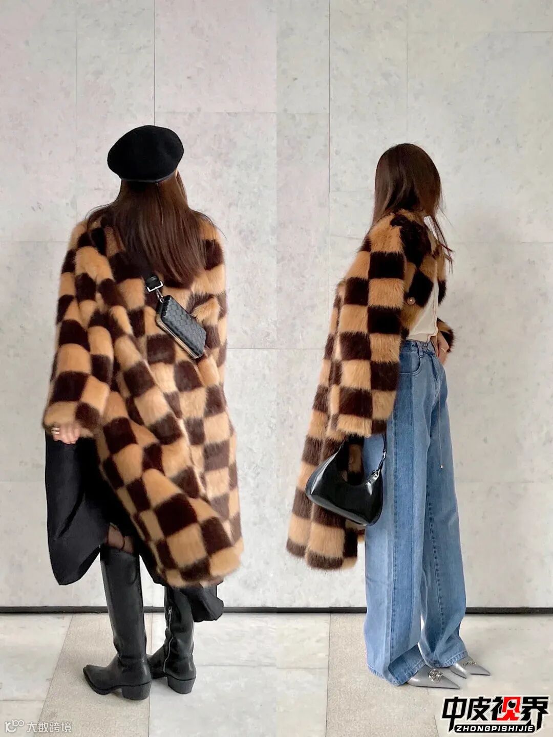 经典格子拼接,复古依旧,搭配机车尖头高筒靴,削弱整体体积感,A到爆有没有,搭配直筒丹宁帆布鞋,休闲舒适,中和掉了皮草的华丽感,简单也好穿。