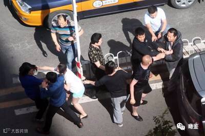 时不时还会和围观的人群说几句,生怕别人不知道他是受害者。