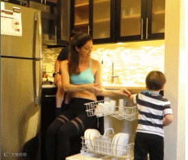 这位辣妈不仅完成了做饭洗碗,