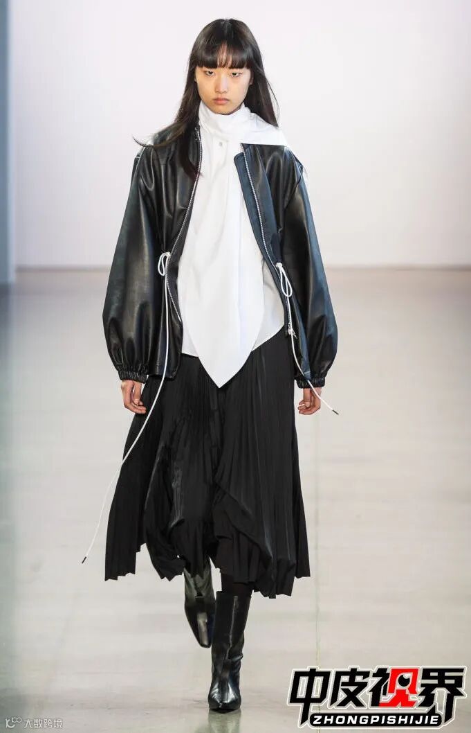 皮革单品在本身的厚重感中用不同材质混合搭配,使得整体的协调感更加的突出皮革的质感与品位,高级,时髦。