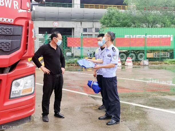 义乌港务联合高速交警金华支队四大队民警,在义乌港一期库区发放宣传资料,开展安全知识宣传活动,号召广大经营户强化主体安全责任意识,提醒广大集卡车司机文明驾驶,共同维护库区安全秩序。