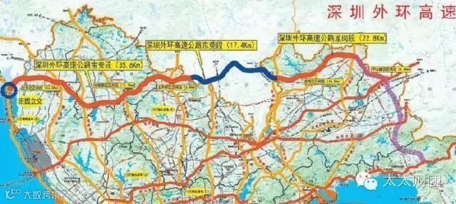 深圳外环高速:最新消息2018年通车 深圳连接东莞的外环高速将建成,沿线与广深沿江、广深、南光、龙大、梅观、清平、博深、深惠、深汕东部沿海等10条高速相接。