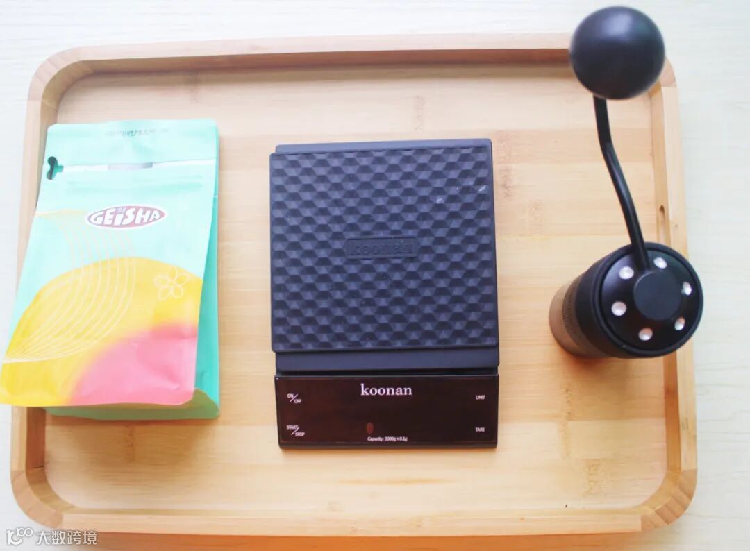 我们所需的材料有:咖啡豆(或者咖啡粉)、手磨机、手冲壶、温度计、滤杯、分享壶、滤纸、咖啡杯。
