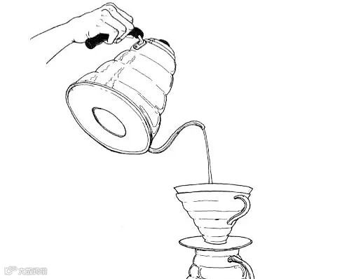 使用微量热水,给滤杯与手冲壶的“温壶”,让咖啡器具的温度提升。