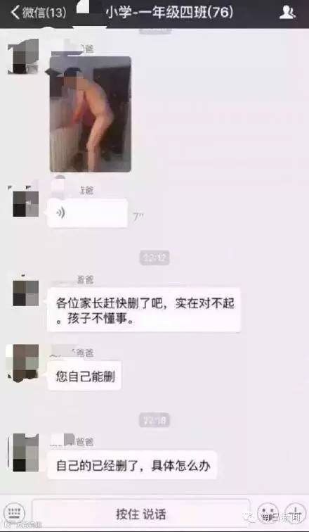 某在读小学一年级的小盆友,因不写作业被老爸教训,心怀委屈无处申诉。在老爸洗澡的时候,拿起老爸手机,拍了一张老爸的“果照”,并分享到了班级家长群里……看你以后还怎么参加家长会……