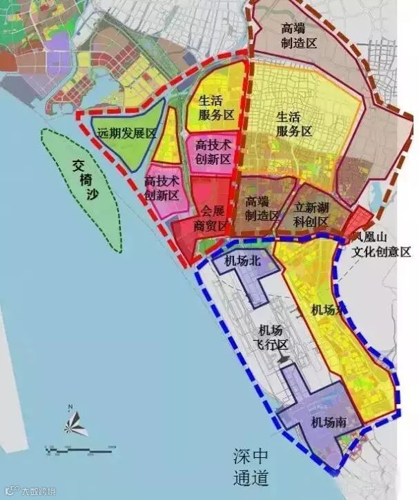 |“会展商贸区”紧邻机场北,深中通道的位于机场南侧。
