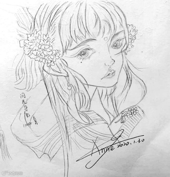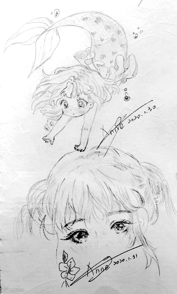 2020年1月的那个冬天特别的漫长,乖乖宅在家里的大家都在社交软件上晒着自己新学的各种技能。那我能干些什么呢?料理黑洞的我开始拿起儿子的铅笔,霸占了他的素描本,开始了20多年未画的真人动漫临摹。毫无绘画功底的人,凭借年少时对纸质漫画的热爱,静下心来“杀”时间,开始的时候我画的是这样的。