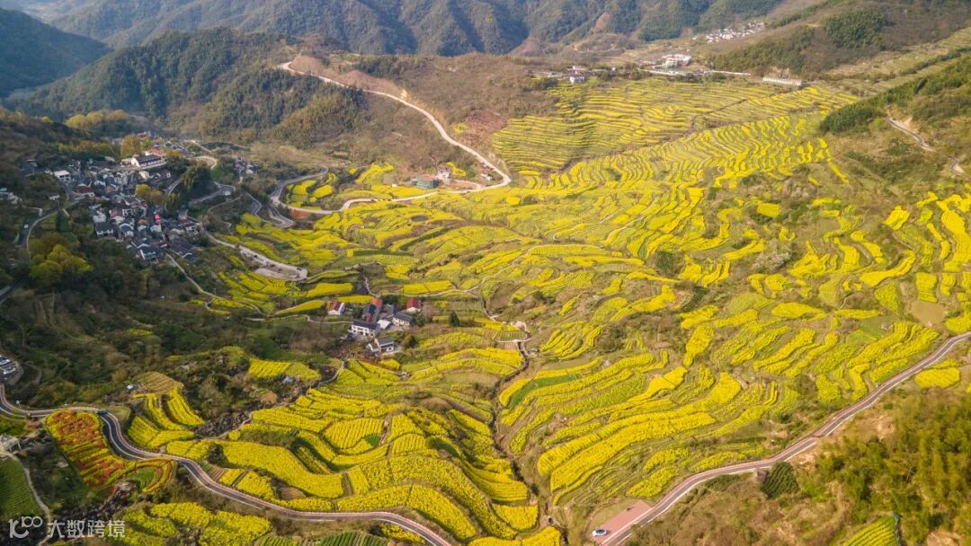 近日,绍兴市上虞区岭南乡覆卮山千年高山梯田,油菜花次第开放。记者 郑培庚 摄