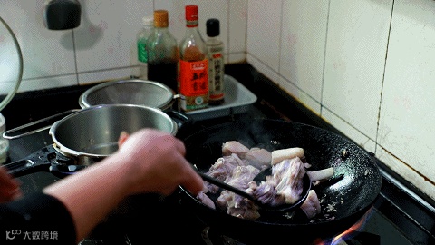 锅中加油,炒香羊肉