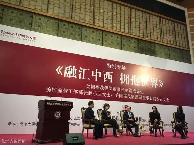 10月21日晚,赵锡成博士与赵小兰,赵安吉前往北京大学访问,出席“PKU Speech ·华商名人堂”活动并发表主题演讲。布莱尔也跟同台亮相,为家人助阵鼓励。