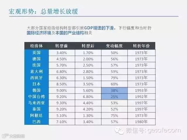 其他国家的转型在 70 年代,而 70 年代是国际经济最动荡的时代,动荡加上衰退,所以说增长下行的幅度就相对比较大。