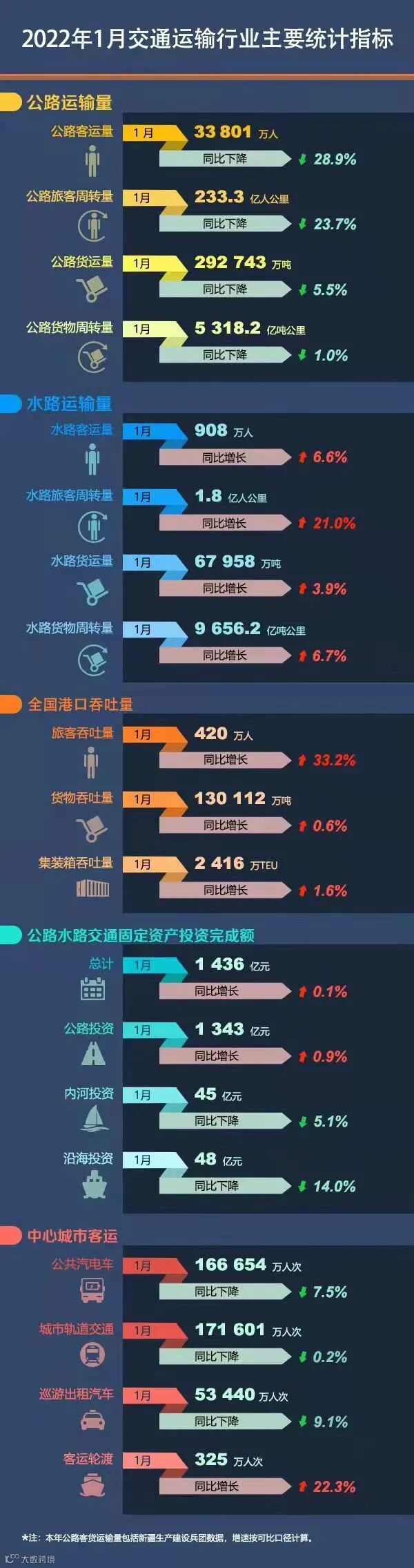 1月全国交通运输行业主要统计指标
