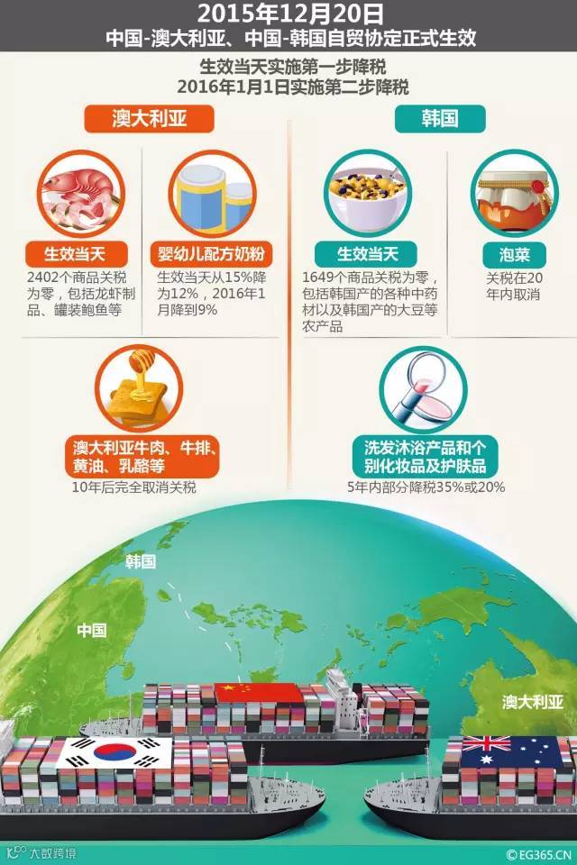 不仅如此,中韩和中澳自贸协定12月20日生效,中韩双方逾90%产品有望逐步进入零关税,而中澳双方100%产品则将逐步实现零关税。韩国生产的智能手机、笔记本电脑、化妆品、小型生活家电等都有望迎来价格下降,中国自澳进口的牛羊肉、葡萄酒、乳制品、龙虾、鲍鱼等产品将逐步降低关税,消费者也能从中获得实惠。