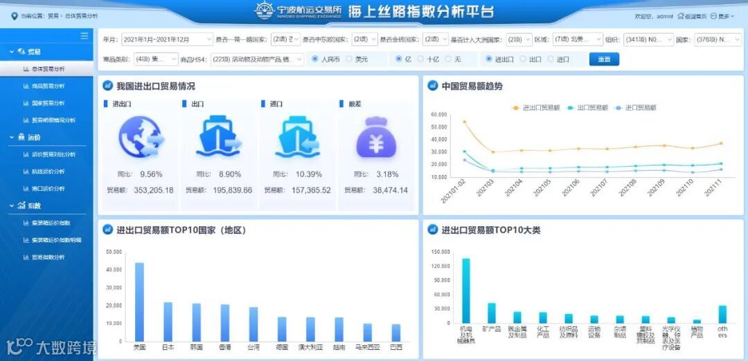 建成后,航运大数据中心项目对于提升政府对相关行业的监测和管理水平、增强行业面对国际供应链风险的预测和应变能力、助力港口码头运营效率提升和成本优化、服务“一带一路”倡议实施等均具有重要意义。同时,航运大数据中心也能有力推动宁波航交所国际航运和国际贸易领域数据的集聚。截至目前,航运大数据中心已形成国际贸易类、集装箱航运类、船舶类、宏观经济类等几大类主题数据库,累计获取数据超过17亿条,其中集装箱运价数据覆盖全球1000余个港口。