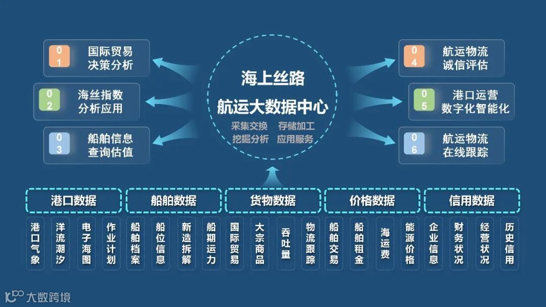 航运大数据中心项目是国家发展改革委2018年“互联网+”、人工智能创新发展、数字经济试点重大工程项目,旨在通过该项目为海上丝绸之路指数提供强有力的支撑,推动海上丝绸之路指数成为全球航运物流的风向标,同时通过汇聚全球范围内港航物流和国际贸易领域的港口、船舶、货物、价格等要素的相关数据资源,打通港航物流和国际贸易等领域的上下平台,实现行业性大数据的集聚和融合创新。