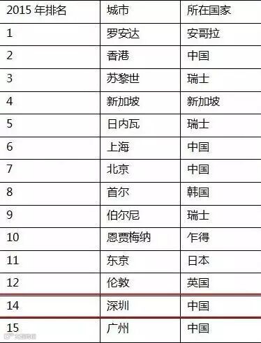 在之前公布的2015年世界城市生活成本排行榜上,深圳位居第十四↓