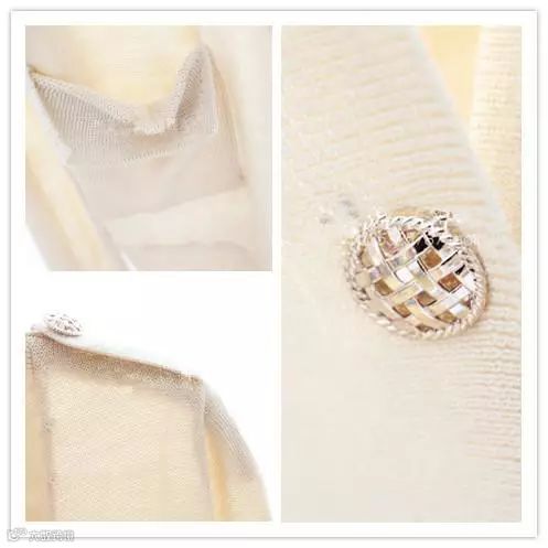 3.面料之后,就要从辅料来衡量一件衣服的品质了,高品质的衣服绝对不会在辅料上以次充好偷工减料。扣子、拉链、钉珠、水钻等等,这些在衣服上以装饰作用为主的成分都属于辅料,而它们的品质大多一眼便能识别出好与坏。此外,高品质的服饰一般都会额外配上纽扣等辅料,以便丢失补用。