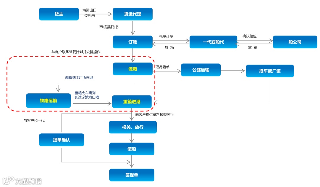 海铁联运操作其实跟普通的订舱模式差不多,只是将提箱点从宁波堆场改到内陆火车场站而已。