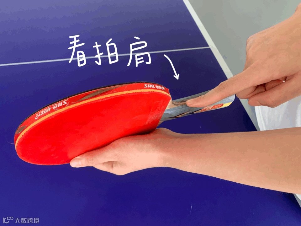 2.拇指与食指伸直合拢,正好分别夹着球拍的正反面。此时拇指、食指与虎口形成一个稳定的凹形,球拍能够被固定住。
