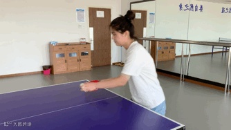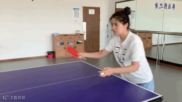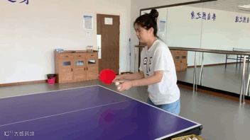 正手台内搓球——前臂带动手腕吃住来球,由后上往前下接触球的中下部向底部发力摩擦,这个过程中要多体会让球停留在球拍上的感觉。