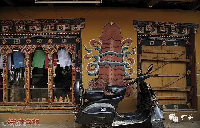 不丹还有一个“怪俗”,就是对男性生殖器的崇拜,彩绘的男性生殖器在墙壁、大门上举目可见,并且图案各异。骑驴见了都感觉脸红啊!