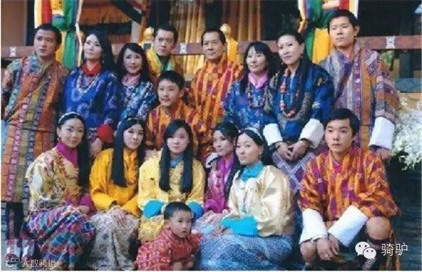 (中间男子为当时国王辛格.旺楚克,他共娶了四个老婆,蓝色衣服的女子,生了9个孩子,和他依着站的80后男子为现任国王)