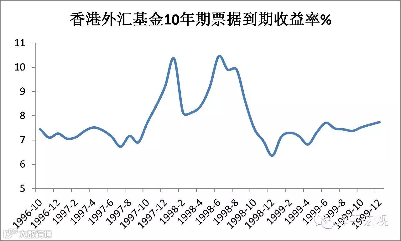 2)1998年亚洲金融危机。东南亚地区楼市泡沫堆积、银行短期外债高筑、政府外汇储备普遍不足,美元加息回流美国,导致危机爆发。危机中,香港股市大幅下跌,港元面临贬值压力时,债跌,贬值压力解除后,债涨。危机前,以香港本地股为主,危机后,与中国经济相关性高的国企股成为港股市场的主力。