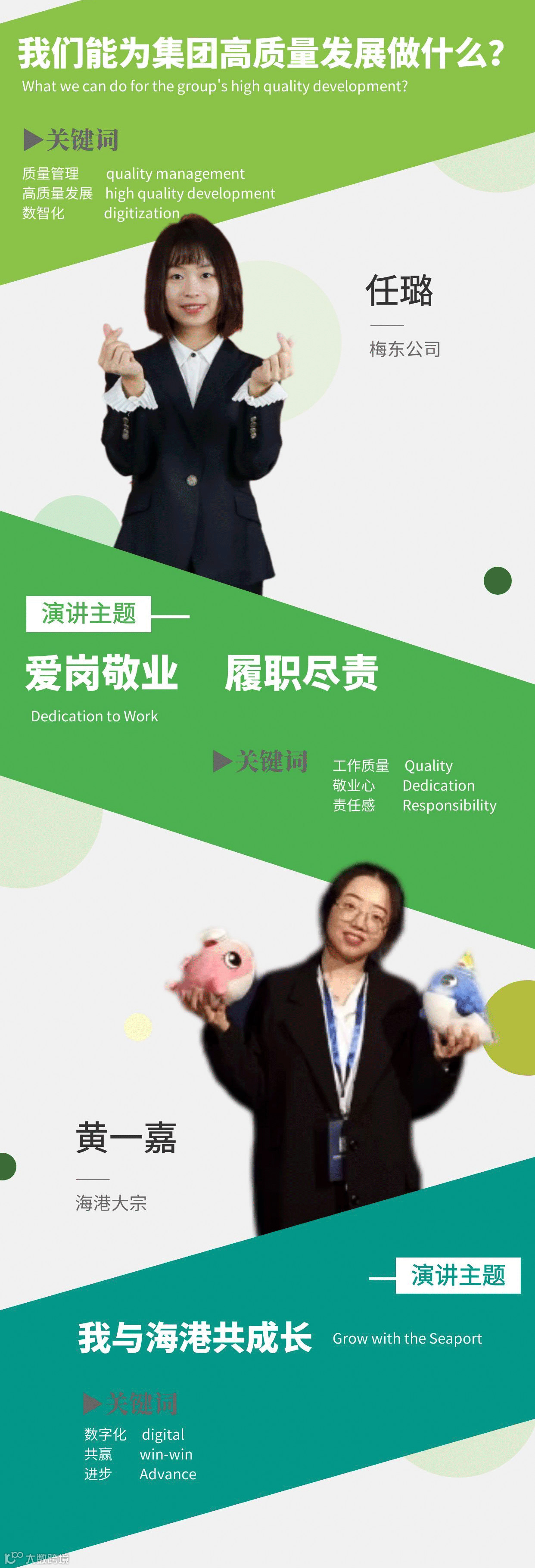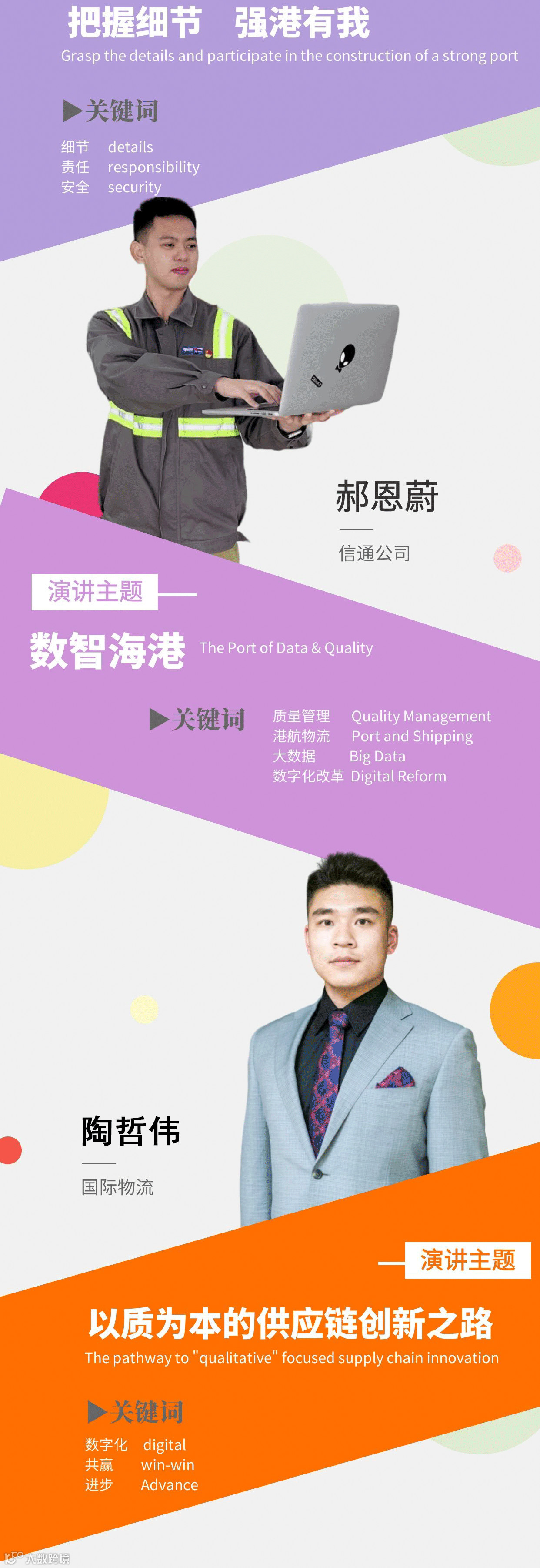 选手们围绕集团质量管理模式(“一核四共双循环”)和“以优质服务铸强港标杆”质量文化理念,立足本职工作岗位,进行主题演讲。