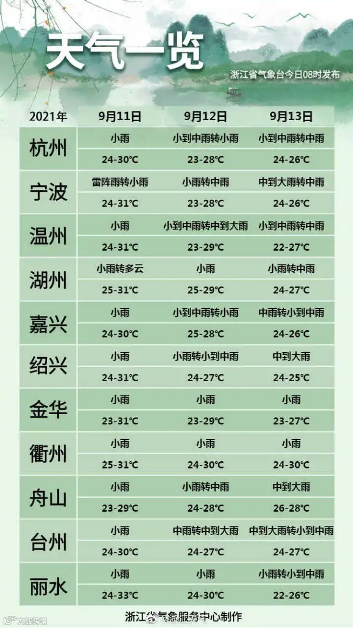 今天早晨最低温度:全省24-26℃。白天最高温度:全省31-33℃。