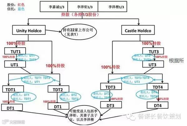 相信这只是冰山一角,实际情况应远远超过这幅图所呈现的状况。李嘉诚家族以此不但控制着22家上市公司,而且将婚姻、继承、遗产税、意外等各类风险隔离于财富之外。
