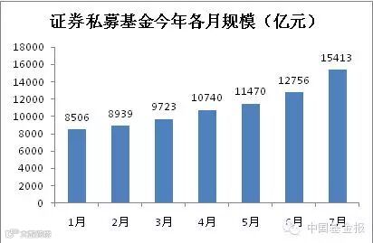 虽然股市经历调整,但7月份私募基金规模继续大幅增长。根据中国基金业协会上周发布的最新私募规模统计显示,截至7月底,证券投资私募基金数量达到10325只,规模达到15413亿元,和6月底相比,证券私募基金数量增加896只,规模增加2657亿元,单月规模增幅达到22.55%。