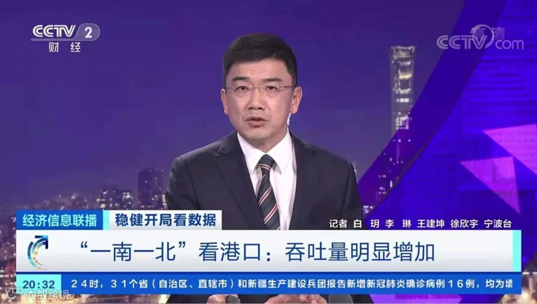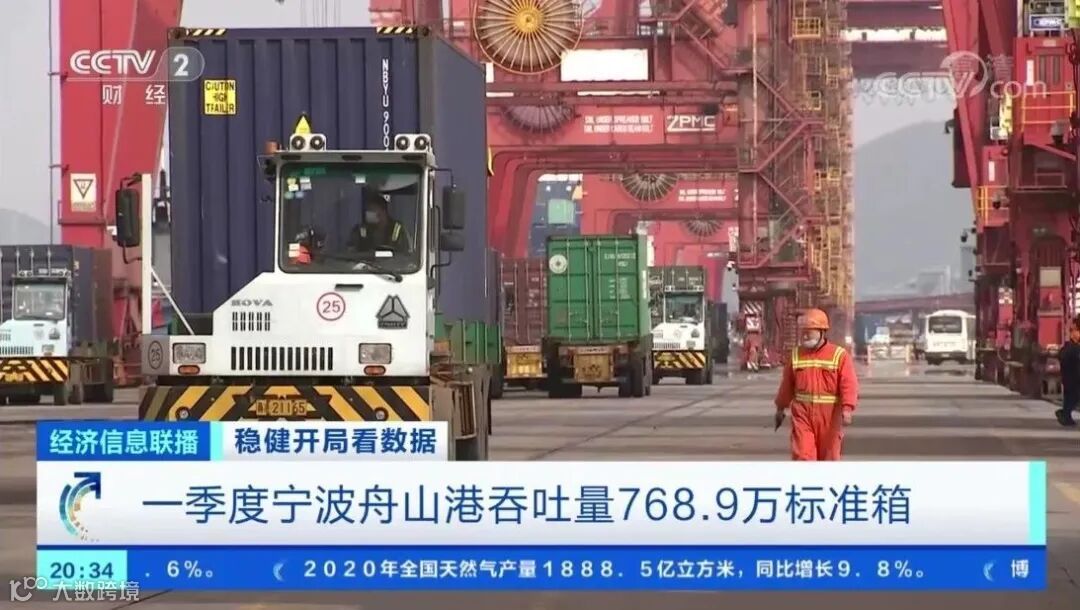 4月18日,央视《经济信息联播》头条播出《稳健开局看数据 “一南一北”看港口:吞吐量明显增加》,聚焦了宁波舟山港一季度港口运输生产。今年一季度,宁波舟山港预计完成集装箱吞吐量768.9万标准箱,同比增长25.1%。
