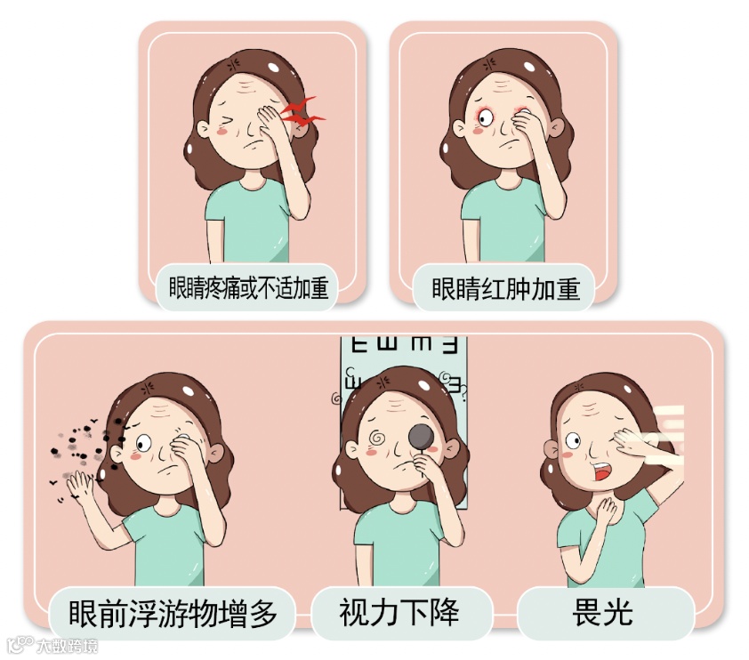 如果注射抗VEGF药物1周内,出现眼部疼痛或不适加重、眼睛红肿加重、眼前浮游物增加、视力下降、畏光等不适,需立即就医,警惕眼内炎的发生。