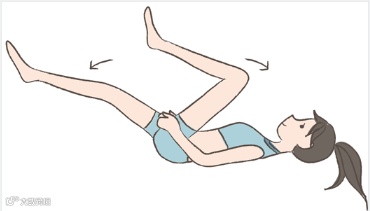 双臂贴紧地面,双腿与地面呈30°角;双腿交替屈伸,感觉在向后蹬一辆自行车,动作尽量缓慢,不可用力蹬腿;下背部始终贴紧地面,全程保持均匀呼吸。