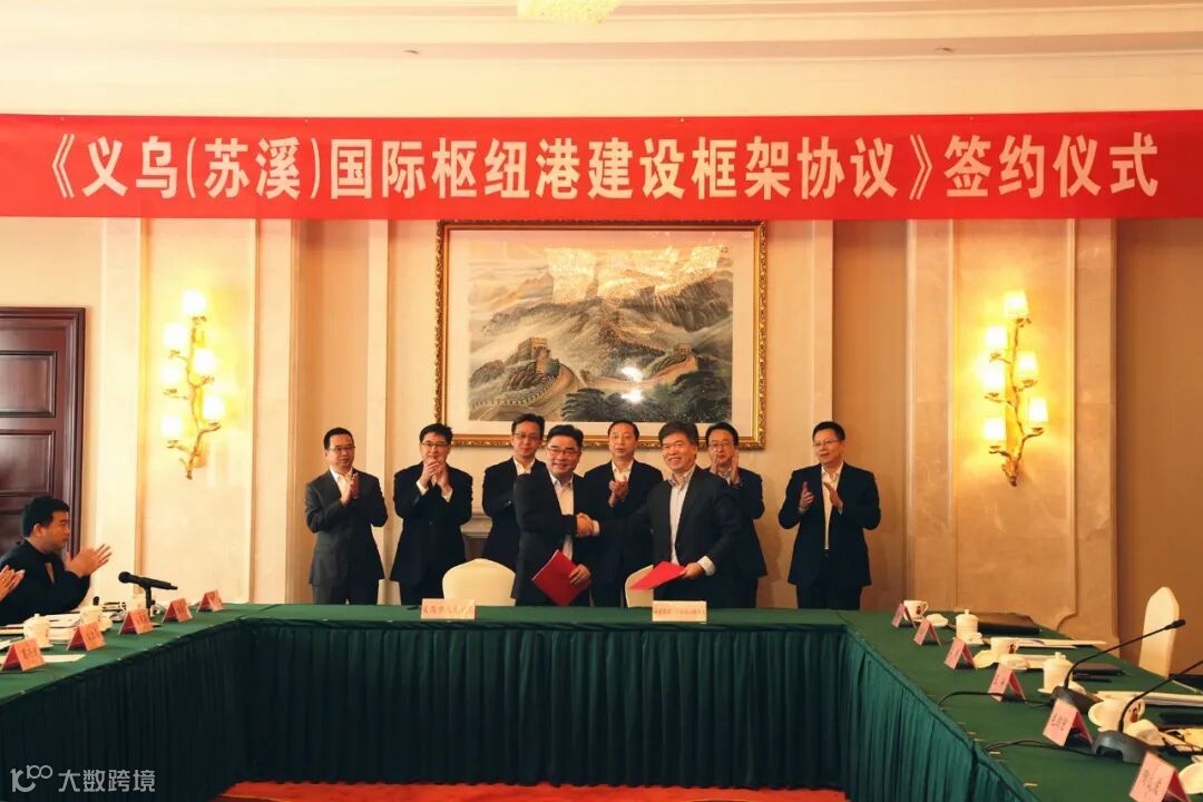 3月24日,浙江省海港集团、宁波舟山港集团与义乌市签订义乌(苏溪)国际枢纽港建设框架协议。