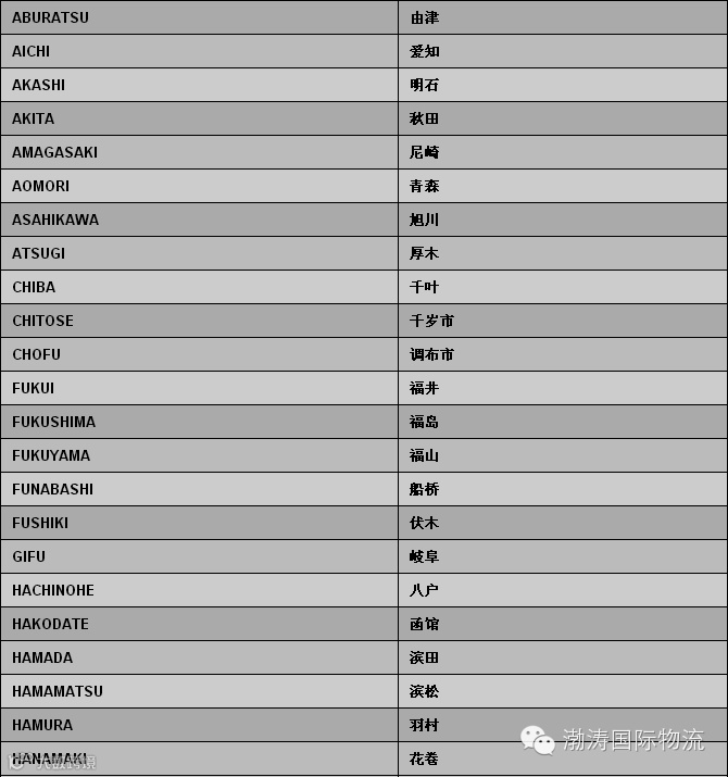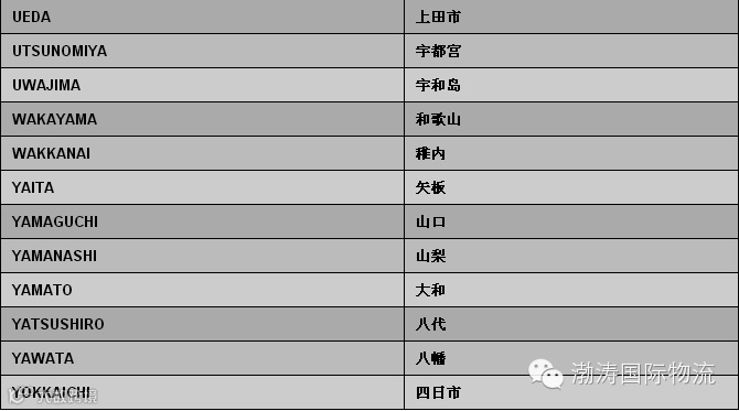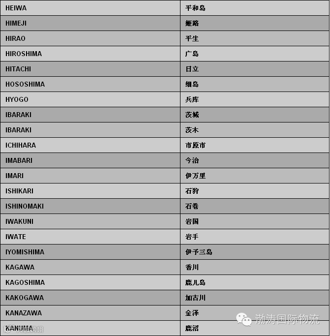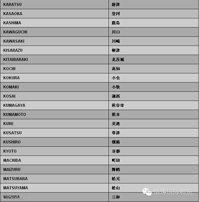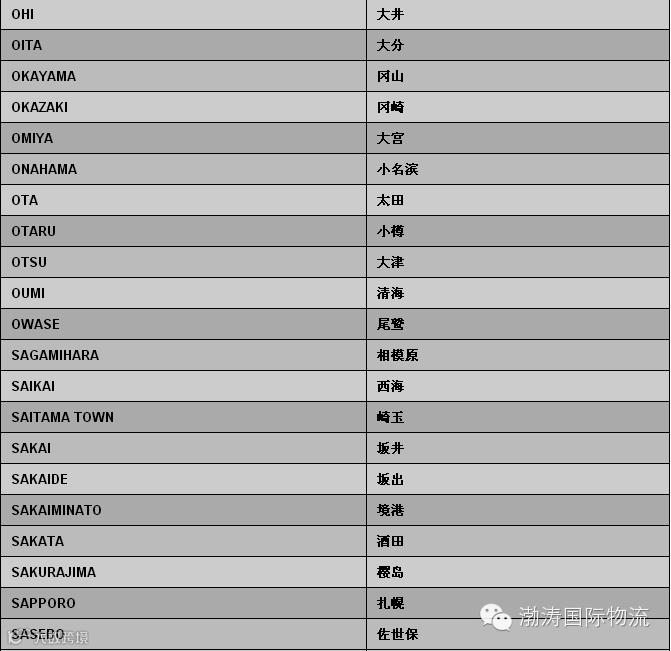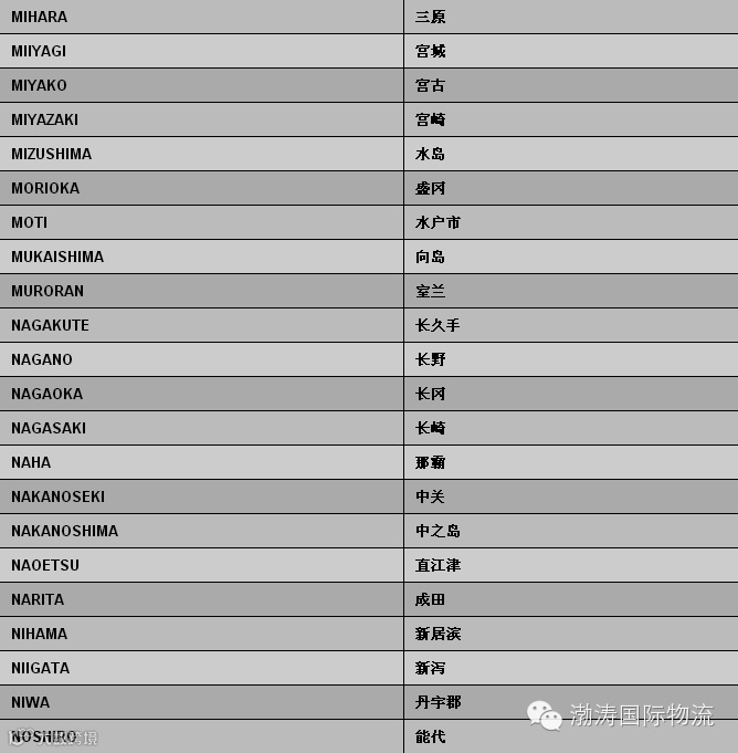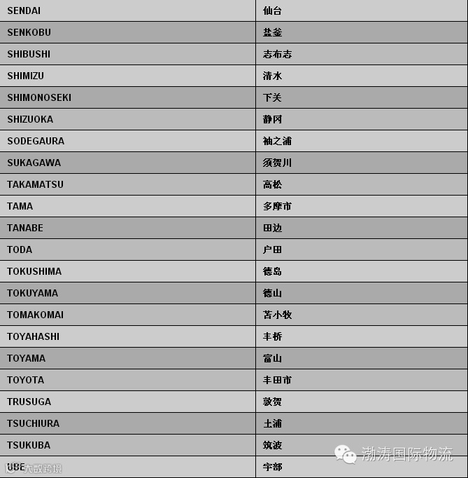 日本偏港与内陆点中英文对照表