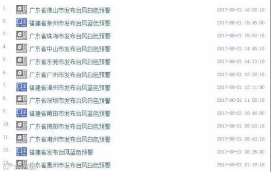 ▼广东、福建多地已发布台风预警